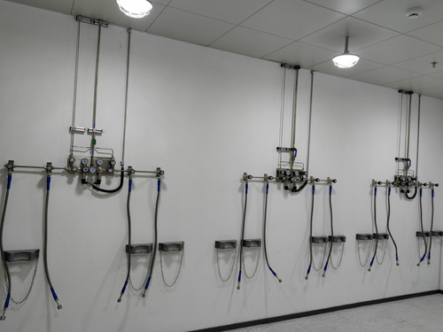 7.氣瓶間內我們要存放在的氣瓶進行帶防倒鏈的氣瓶支吊架進行固定,氣瓶支吊架加固牢固、美觀性大方得體。氣瓶支吊架進行鋁不銹鋼生產制作而成。